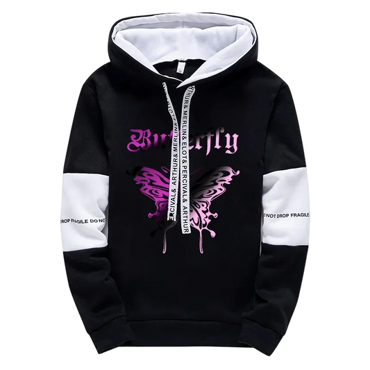 Girls Urban Fashion Loose Coat Butterfly Letter Print Hoodie for Woman High Grade Y2K Korean Style Hooded Long Sleeve Sweatshirt