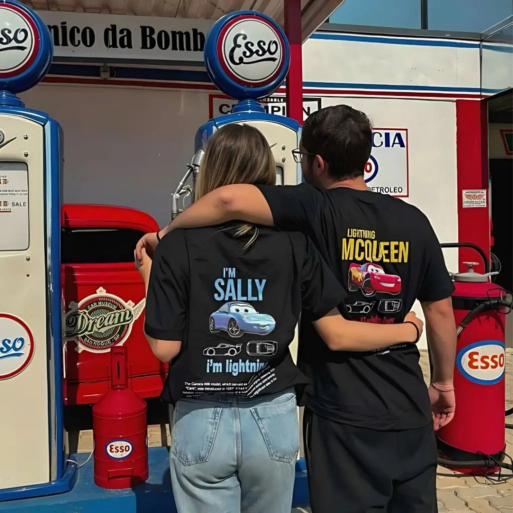 Disney Pixar Movie Cars T-shirt Couple Mens Womens Lightning Mcqueen Sally Oversized Y2k T-shirts Double-sided Printed Clothing
